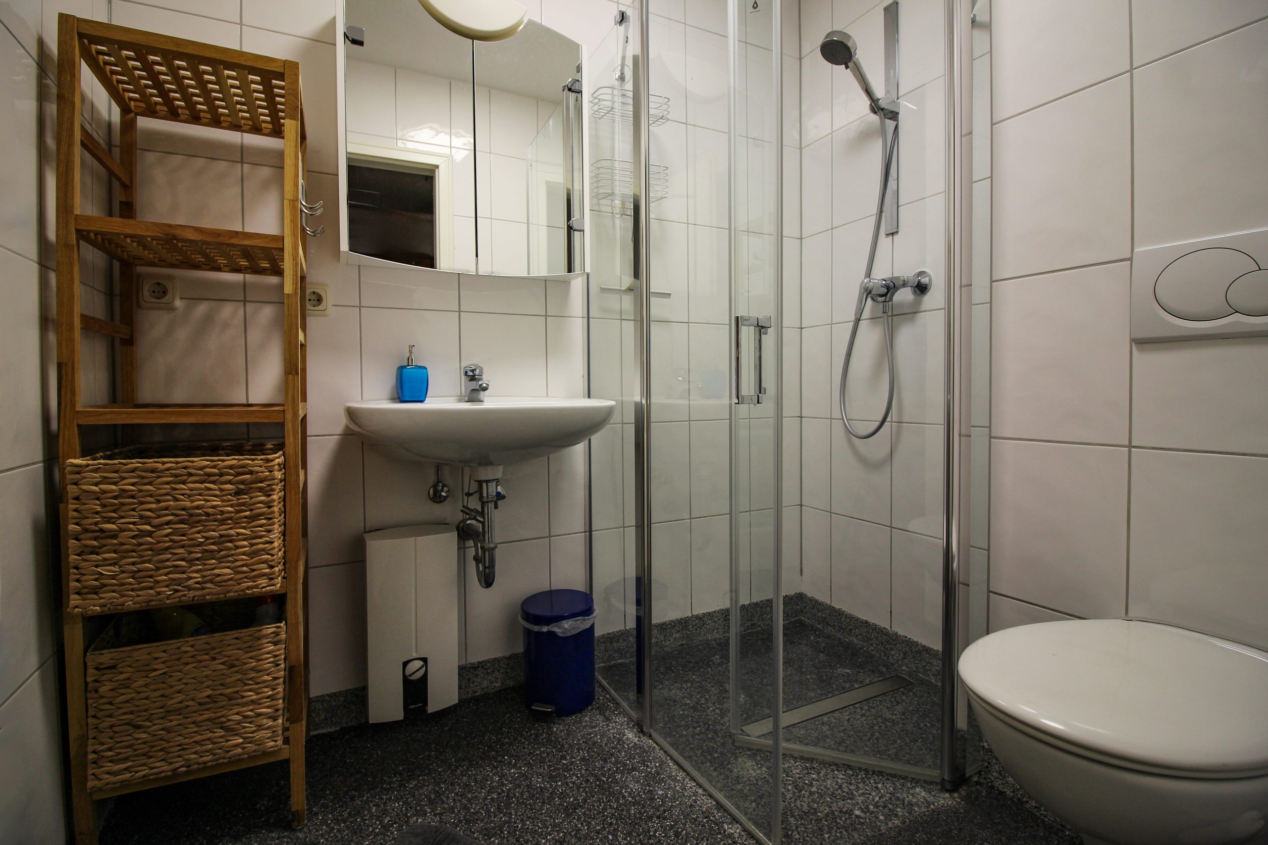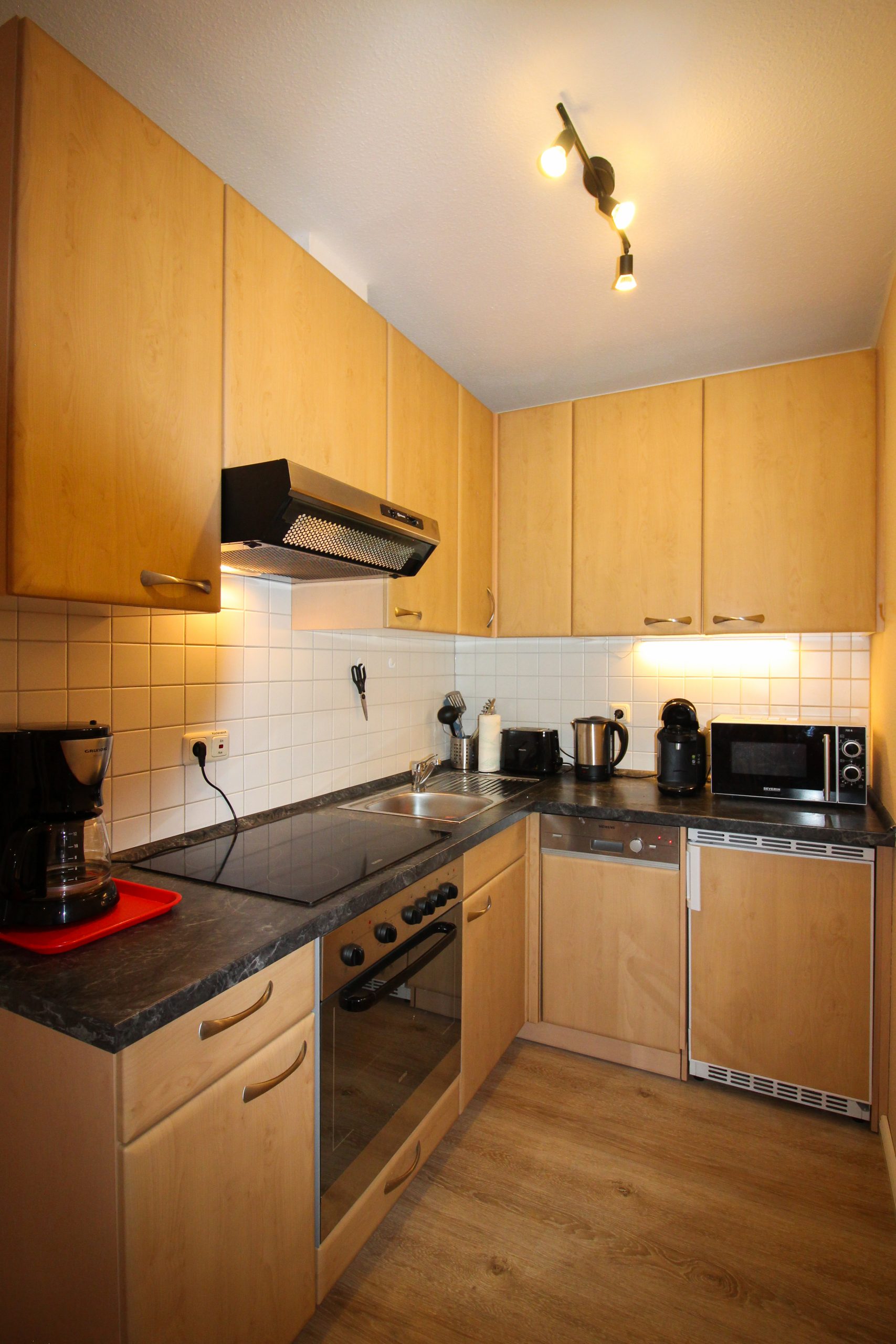 Die gemütlich mit Holzmöbeln eingerichtete 2-Zimmer Wohnung im 1. Dachgeschoss (2. OG) ist 42qm groß und verfügt über ein Schlafzimmer, ein Wohnzimmer mit offener Küche, einen Flur und ein Duschbad. Vom Wohnzimmer erreicht man den großen Balkon der mit einem Tisch sowie 2 Gartenstühlen möbliert ist.